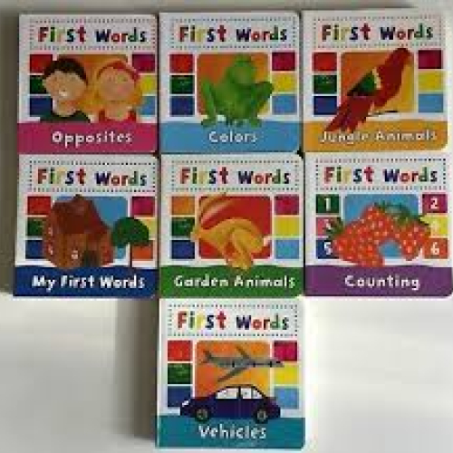 The tittles included are; First words opposites, First Words Garden animals, First Words Counting, First Words Vehicles and First Words Colors.